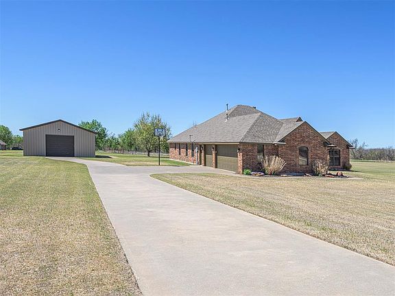 This beautiful home sits on 2.25 (mol) acres, cul de sac in Tuttle School District. The living room welcomes you in with a gas fireplace and cozy feel. The kitchen has granite counters, pantry, gas range and plenty of counterspace. The primary suite is big and allows plenty of room for your oversized furniture. The primary bath has a soaker tub, walk in shower and huge closet. The property has a 30x40x12 shop with electric, Including a 50 amp, 250 volt outlet for a welder. The shop has 2 overhead doors, a storage loft and is fully insulated. On the outside of the home, there's a 50 amp outlet to plug in a generator or RV. In the garage is a storm shelter. There's also a timer that controls the electrical outlets under the soffits, so you can program your Christmas lights when to come on & go off! The water heater was replaced in 2015. Plenty of room in the backyard to put in a beautiful pool and outdoor living! There are many additional features of this home that you are going to love! Don't miss it!