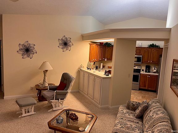 Move In ready Condo in a very desirable location. Close to Shopping, restaurants, & Grocery. As you enter in thru the Foyer you will see the Split floor Plan boasts 2 large sized bedrooms . The primary bedroom has an ensuite with a Walk in Closet, and a tiled shower. The open floor plan has vaulted ceilings, and an electric fireplace in the living room. In the kitchen we have all stainless steel updated appliances. 2 Baths and a 2 car attached garage make life easier. The sliding doors lead out of the living room to a partially awning covered concrete back patio area for entertaining. The low monthly service fee covers mowing, trimming, mulching, and snow removal so you can just sit back relax and take life easy.