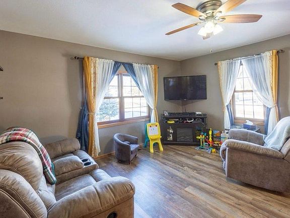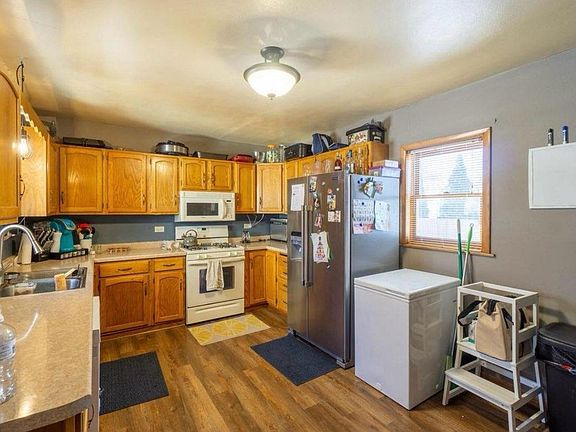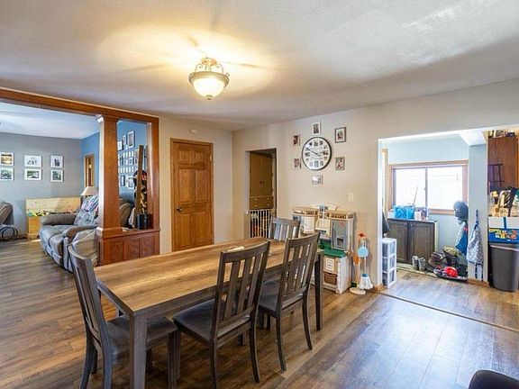 This move-in ready 4-bedroom, 1.5-bath home in Merrill offers 1,648 square feet on a spacious corner lot. It features convenient main-floor laundry and a welcoming foyer for winter gear. The updated kitchen includes ample counter space, cabinetry, and a door to the backyard, along with a cozy dinette. A formal dining room with a wood pillar entrance adds elegance for special occasions. The living and dining rooms are perfect for entertaining. The outdoor space includes a deck and gazebo for relaxation and gatherings. The main floor has two bedrooms, while the upper-level features two more, ideal for a home office or guests.