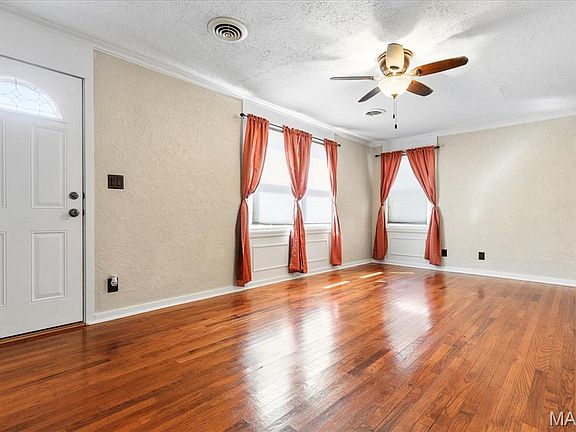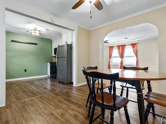 Welcome to this delightful 2-bedroom, 1-bath ranch offering comfort, style, and convenience all in one. Step inside to find a bright living room filled with natural light, featuring gleaming hardwood floors and classic trim details. The inviting layout flows seamlessly into the dining area and updated kitchen—complete with white cabinetry, granite-look countertops, tile backsplash, and stainless steel appliances including an electric range and built-in microwave.