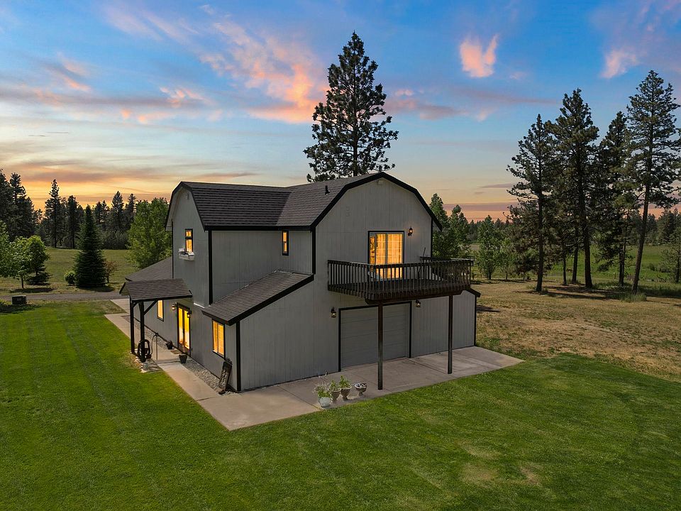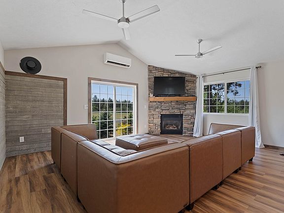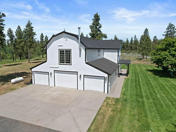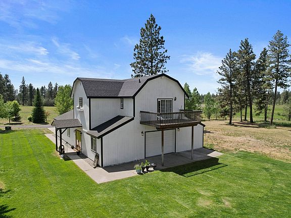Totally remodeled barndominium! Brand new roof, brand new exterior and interior paint, brand new LVP throughout and freshly remodeled kitchen! Cupboards remain unfinished so you can customize them how you like. This beautiful 10 acre property backs right up against state land has a fully fenced orchard sat inside a full sized horse arena. There is RV parking with hook-ups right next to the well house, while the well house has a full bathroom installed for your guests. Off to the west side of the home there is a 500 sqft building with a wood stove. Make it a workshop, craft space or (like current owner) your own mini bar! Unique property, full of possibilities. Close to the highway and 15 minutes from Spokane. Contact agent for showing or drop by one of the open houses!