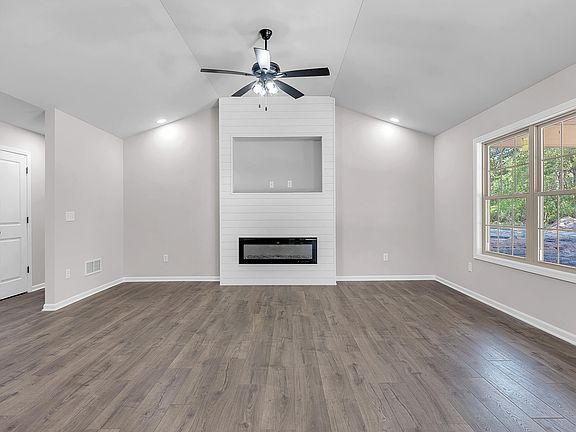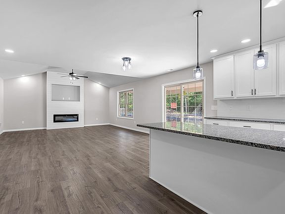 Additional patio spaceSleek electric fireplaceCovered back porchStunning granite countertopsBuilt-in desk areaSpacious kitchenWalk-in pantry