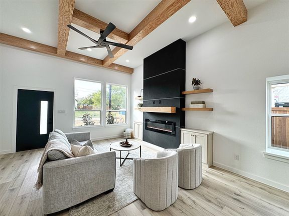 Electric fireplaceWood privacy fencePrivate yardHigh ceilingsOversized windowsLuxury vinyl plank floorsQuartz countertops