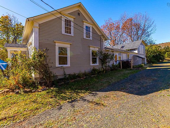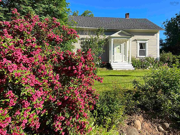 Lots of history here in this 1.5 storey house Circa 1853. Attractive curb appeal home sits on 1.5 acres lot amid mature trees with an inviting central covered entrance facing the road.. From here you have a fantastic view of the Annapolis Basin just across the road. Quaint sitting room adjacent to front entrance with access to a wide staircase leading to four bedrooms and bath on upper the upper floor. The main floor features a cozy kitchen and pantry, large living room, and dining area just off the kitchen. An add-on separate side entrance on back of house provides access to the kitchen, some storage, as well as access to a very large workshop in back (13 x 14) + (33x14). Heat pump in living room. Separate garage (12.6 x 17). Located just 20 minutes outside historic Annapolis Royal with all its amenities and historic sites. The Port Royal Habitation is close by.