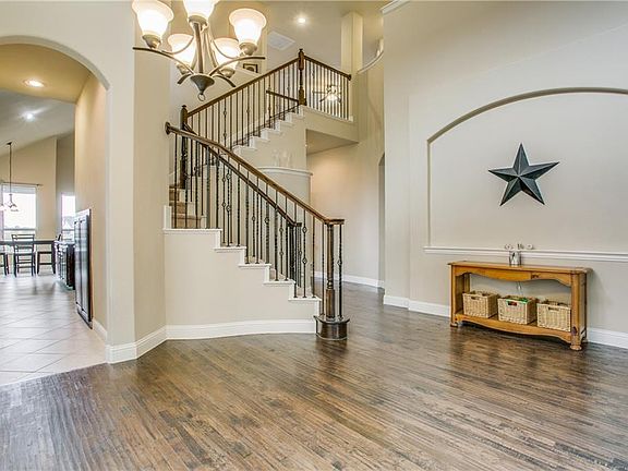 Great value and best priced home on the greenbelt in Light Farms,15k + under market. 4 bedrooms, 3.5 bath and home office with a great floor plan. Stunning grand entry, with soaring ceilings, hardwood floors and sweeping staircase. Gourmet kitchen boasts a large triangular center island, stainless appliances, including double ovens, and butler's pantry with wine frig leading to formal dining room. Large living room features corner stone fireplace, and vaulted ceilings. Master suite includes garden tub, full sized shower, extra large closet with direct access to laundry room. 3 bedrooms, 2 full baths, game and media complete the upstairs.