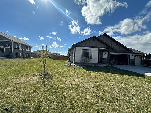 Welcome to this stunning open-concept home. The heart of the home is the cook's dream kitchen. You will find a center island that allows for ample room to prepare meals, a complete stainless appliance package, and tiled backsplash. The great room is open to the dining area, and a living room with vaulted ceilings. This well-thought-out design is ideal for entertaining or simply relaxing near the gas fireplace. There are 2 bedrooms near the front of the home that share a full bathroom. The primary suite is tucked in the back off the living room and features a walk-in closet and double vanity. You can't go wrong with a 3 3-car garage to store all of your Montana toys and keep your cars and trucks toasty warm in the winter months. All this on a 10,000 sf landscaped lot and just down the street from a 12-acre park!