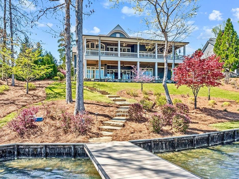 Lake Oconee’s Most Opulent Lakefront Estate – boasting panoramic lake views, a private deep-water dock, detached guest suite with fully furnished kitchen, and approved infinity-edge pool plans — all just a five-minute boat ride to The Ritz-Carlton and Reynolds Lake Club. This like-new, fully furnished 5-bedroom, 6.5-bathroom estate, masterfully crafted by DreamBuilt, epitomizes lakeside elegance with a seamless open-concept design, soaring vaulted ceilings, rustic beams, and walls of floor-to-ceiling windows framing the breathtaking waters of Lake Oconee. As you enter the grand foyer and great room, your eye is immediately drawn to the spectacular lake views and oversized outdoor living space with charming daybed swings, perfect for taking in the serenity of the shoreline. The chef’s kitchen is a true centerpiece, featuring a Wolf cooktop, farmhouse sink, large island, and custom cabinetry, with an adjacent screened porch designed for effortless indoor-outdoor entertaining. The main-level primary suite offers barreled, beamed ceilings, a spa-inspired bathroom, and extensive dual closets with a built-in vanity. Throughout the home, luxury finishes abound, including hardwood floors, plantation shutters, a modern linear fireplace, and an elevator for ultimate convenience. The terrace level captures lake views from every angle, offering two additional en-suite bedrooms, a bunk room suite, and a custom wet bar, creating a perfect space for hosting family and friends. Enhancing the property’s appeal, a detached guest suite features its own kitchen, laundry area and bathroom, providing an independent retreat for extended stays. Thoughtful details continue with three full laundry setups throughout the home and an extra cedar-lined golf cart garage, ideal for storing lake toys and recreational gear. Step outside to your private lakeside oasis where approved infinity-edge pool plans await, or unwind on your dock with a sunset toast before heading out for a peaceful evening cruise. This extraordinary Harbor Club estate represents the pinnacle of lakeside living, offering unmatched privacy, elegance, and sophistication — a true one-of-a-kind property where every detail has been meticulously crafted for an unparalleled lifestyle at Lake Oconee. Seller is willing to include a Reynolds Membership lot at closing for asking price of $3,699,000 for buyers to enjoy the best of both Harbor Club and Reynolds.