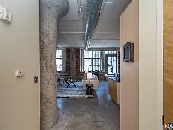 Nestled in the vibrant heart of downtown, this loft exudes an urban chic ambiance. Its towering ceilings and open floor plan create an airy and spacious haven, while the large industrial windows allow sunlight to spill in the main area & bedrooms. Step outside to the private balcony and soak in the city's energy. Kitchen boasts a center island with ample seating, perfect for entertaining and the gas slide-in stove with hood vent ensures seamless cooking experiences. Conveniently adjacent is the utility closet with private laundry. The exposed brick walls in the bedrooms lend a touch of rustic warmth, with beautiful large pocket doors, complemented by the spa-like bathroom featuring an indulgent Bainultra air jet tub & separate shower. Additional storage space is available within the building while the secure garage provides one car parking spot with extra parking outside for guests. The rooftop deck, community club room & fitness area elevate this condominium to a luxurious sanctuary. This condo is within minutes to the new Soccer stadium, down the street from the dome enterprise center and Union station and a short distance to Busch Stadium and the Arch.