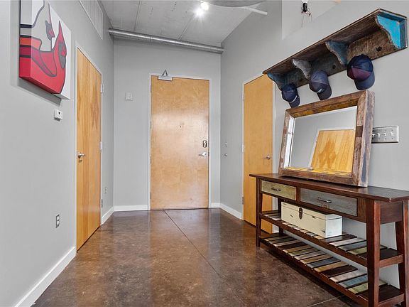 Welcome to unit 501 in the fabulous Printers Lofts building! Southern facing loft w/ perfect layout and tons of natural light. Primary suite w/ large walk-in closet and en-suite w/ separate shower and soaking tub. Large island perfect for entertaining. Stainless appliances, beautiful stained concrete floors throughout, exposed brick, and curved walls that add that extra touch of character. Seller has a car lift that comes w/ parking space which is rare! Great gym, community space/party room, rooftop access from parking garage in adjoining building is great for grilling out w/ perfect Arch view. Professional photos will be uploaded Friday Evening, 3-3-23, showings begin on Saturday 3-4-23 Location: Interior Unit