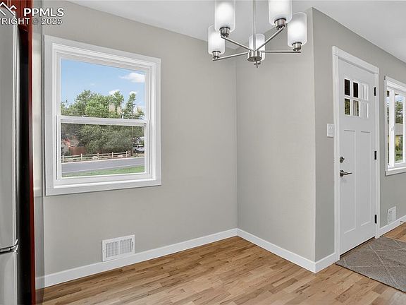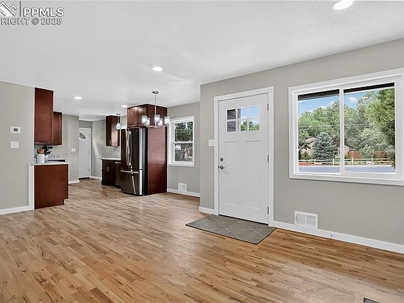 Ranch-style home with a fully renovated interior & mostly finished basement! This corner lot property is located on the southwest side of Colorado Springs between I-25 & the Broadmoor. Refinished hardwood flooring flows throughout the main level in both the living spaces & bedrooms. The kitchen features granite countertops, new cabinets, & new stainless-steel appliances, including a refrigerator, dishwasher, microwave, & electric oven. The primary bedroom, two additional bedrooms & a full bath round-out this level. Entertainment space has been expanded into the mostly finished basement with a spacious family room, a fourth bedroom, and a full guest bath. Enjoy the newly installed carpet on this level as you relax. Other recent updates include new light fixtures, windows, doors, vanities, & commodes as well as fresh interior/exterior paint. Outside a patio stands ready for al fresco dining or enjoying the fresh air. A brand-new shed has been placed for storage & mature foliage provides shade for relaxing outdoors. A new 2-car garage can provide parking or additional storage with adjacent space to fit an RV.
