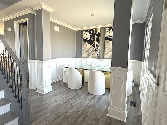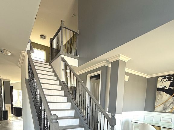 HOME FOR THE HOLIDAYS! Welcome to the highly sought after Shorewood Towne Center Subdivision. This beautiful 4-bedroom, 2.5-bath home consist of over three thousand square feet of modern finishes, custom 8 ft doors, black matte hardware, primary suite has stand alone soaking tub, first floor has custom "82" Inch wide fireplace, waterfall countertops in the kitchen, beautiful well lit sunroom, full unfinished basement has 2 ft higher than standard ceilings w/rough for 4th bath and ready for great layout ideas, custom powder room on main level, custom his and her closet in primary, stainless steel appliances, oak staircase, dramatic open concept foyer along with oversized family room as well a 3 car garage. This home was built in 2022 and still feel brand new.