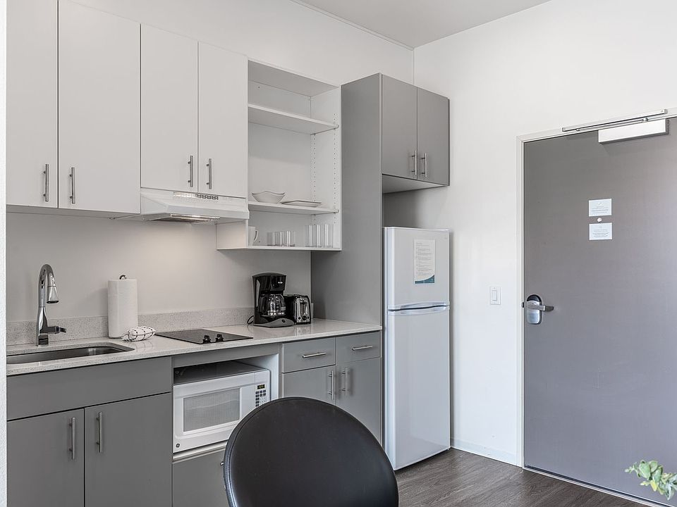 Our smallest studio doesn't compromise on functionality! With a nook perfect for a day bed or sleeper couch and space for a dining table, save money @ Koz on 16th.