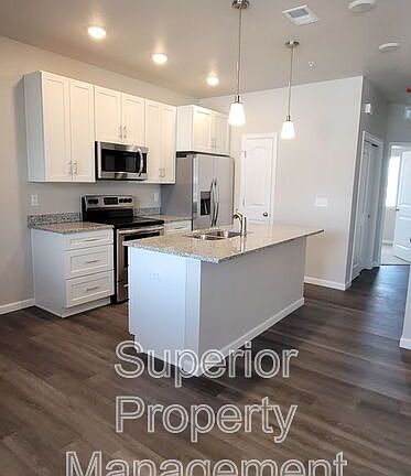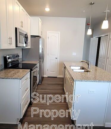 Beautiful, Brand New 2 bedroom- 2 bathroom with tasteful upgrades. The open concept is inviting with hardwood flooring. The kitchen is upgraded with granite countertops and is bright and spacious with lots of cabinets and an additional pantry. The center island is and perfect for entertaining. The master bedroom has it's own bathroom. Comes complete with washer and dryer. Owner pays sewer and trash. Available now!
