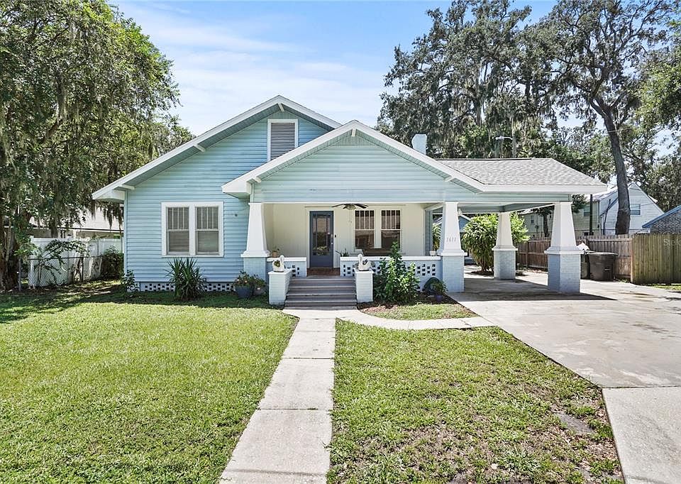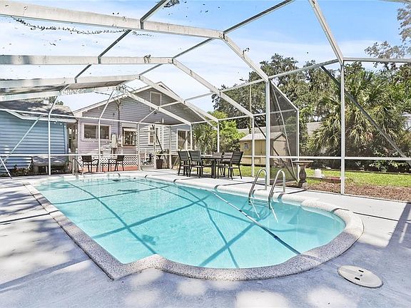 Under contract-accepting backup offers. This centrally located historic pool home on a dead end cul-de-sac blends classic charm with modern upgrades just moments from Lake Hollingsworth and Downtown Lakeland. The main home offers refinished hardwood flooring throughout, three bedrooms and two bathrooms in main part of home 1791 sq ft with the second bath currently under renovation, and a newly updated kitchen featuring quartz countertops, custom cabinetry, tile backsplash, designer lighting, and upgraded hardware that flows seamlessly with the home’s original style. A cozy wood-burning fireplace with a new damper adds to the character. Best of all, there is a soundproofed detached mother in law suite (no kitchen) 250 sq ft that was once used as a recording studio. This offers the perfect setup for a private home office or a comfortable space for visiting family and friends. Recent improvements include a tankless water heater, new tile in the laundry room, new roof and updated electrical in 2023, new appliances, reverse osmosis system, fresh interior and exterior paint, newly stained porch, stackable washer and dryer, saltwater pool conversion, and new pool filter and vacuum. The detached suite was renovated in 2023 with updated flooring and a refreshed bathroom completed in 2024. The third-acre lot is fully fenced and features a screened saltwater pool and charming front porch for peaceful mornings and a one carport. Located near parks, Florida Southern College, shopping, dining, and outdoor recreation, this home combines historic character with functional living and an unbeatable location.