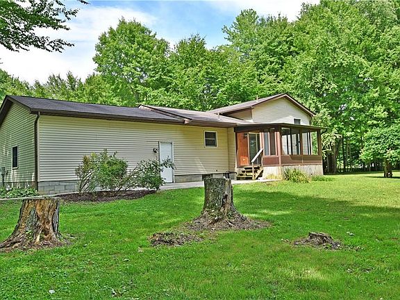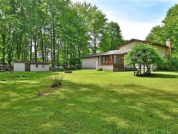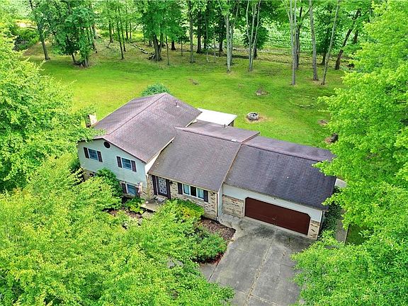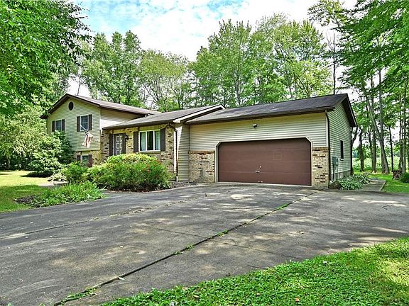 Find your forever home with this secluded Lordstown getaway! The sprawling split level offers gorgeous, natural seclusion with a tree lined frontage that provides both privacy and shade amongst the sizeable property. Sitting proudly in the clearing with a handsome half brick facade, the residence welcomes you inside to enjoy its sun-filled living room, courtesy of the large forward picture windows. Nearby, a robust combined kitchen and dining area complete the main floor as bright blue countertops wrap along the far wall between the stained wood cabinets. Enjoy every meal as you peer across the finished sunroom, perfect for four season scenic relaxation. Upstairs, a trio of inviting bedrooms are joined by a lovely full bath, carrying on the blue highlights with its large tub and shower. Down below, take advantage of the fantastic lower family room with its prominent brick mantle and fireplace. A second full bath can be found outside a finished bonus room, bringing the total to four. The sub-basement offers both laundry and additional storage. Around back, the formidable shed with electric completes the massive backyard.