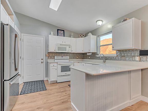 VIEW!!! VIEW!!! VIEW!!! Make sure to check out the View! This wonderful home is nestled in a great neighborhood, offering easy access to shopping, freeways, and countless outdoor adventures. Step outside and enjoy your fully landscaped backyard with stunning views of the mountains and canyon. Relax on your covered porch under the shade of mature trees while you chat with friendly neighbors. This spacious home features 4 bedrooms, 2 full bathrooms, and is plumbed for a third bathroom in the basement, providing plenty of room for all your needs. The front room is highlighted by a beautiful bay window, adding charm and natural light. The home boasts numerous recent updates, making it feel brand new: Rare smoothed concrete in the crawl space for extra storage, Freshly painted doors with new hardware and door hinges, Brand new front door and frame, New garage (from garage into backyard) door and frame, Basement flooring installed less than a year ago, Carpet replaced in 2022, Energy-efficient new windows with warranty (2019), Gorgeous new quartz countertops in the kitchen (2024), Roof replaced in 2020, New 50-gallon water heater (2021), New HVAC and furnace (2018), new chandelier over kitchen table, new light in kitchen, new light/fan in living room, 6 new can lights in the basement family room, Hunter Douglas fans in upstairs bedrooms, Smart auto sprinklers updated in 2017, Transferable Vivint alarm system with sensors and keypad included. Professionally cleaned house and carpets shampooed move-in ready! This home has been meticulously cared for and is ready for you to move in. Don't miss out on this fantastic opportunity to live in a highly sought-after neighborhood! Square footage is provided as a courtesy estimate only and was obtained by county records. Buyer is advised to obtain an independent measurement.