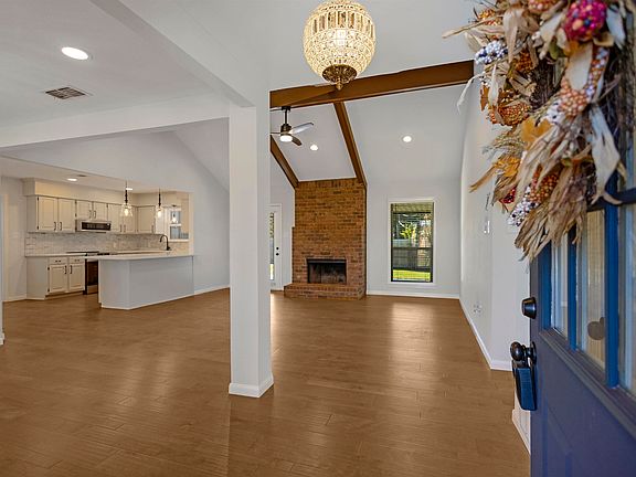 Nestled in one of Henderson’s most desirable neighborhoods, beautifully renovated 4-bedroom, 3-bath home where every detail has been thoughtfully updated, offering the choice between 2 primary suite bedrooms. From the moment you arrive, the curb appeal stands out with a brand-new shingle roof, custom energy-efficient windows, new gutters, siding, trim, and eaves, plus a new brick mailbox and fresh exterior paint. Inside, the home feels completely new—featuring over 80 LED light fixtures, new insulation, and a 200-amp electrical panel paired with a brand-new 5-ton HVAC system for maximum efficiency and comfort. The interior has been freshly painted throughout and showcases stunning pecan wood floors complemented by ceramic tile in the bathrooms and laundry room. The kitchen has been fully modernized with new quartz countertops, an oven, microwave vent hood, dishwasher, and wine/beverage refrigerator, along with a new pantry featuring custom shelving and a glass door. Each bathroom has been beautifully updated with new tubs, sinks, toilets, plumbing fixtures, and vanities, while new exhaust fans, mirrors, and hardware add the perfect finishing touches. Function meets convenience with a newly designed laundry room complete with sink and cabinetry, a new water heater, smoke and CO2 detectors, and all new plugs, switches, and GFCI outlets. The updates extend outdoors with a painted and sealed patio floor, sealed driveway and sidewalks, a new sprinkler controller, and a front French drain system. Every inch of this home—inside and out—reflects quality craftsmanship and modern design, offering a move-in-ready retreat that combines lasting value with timeless East Texas charm.