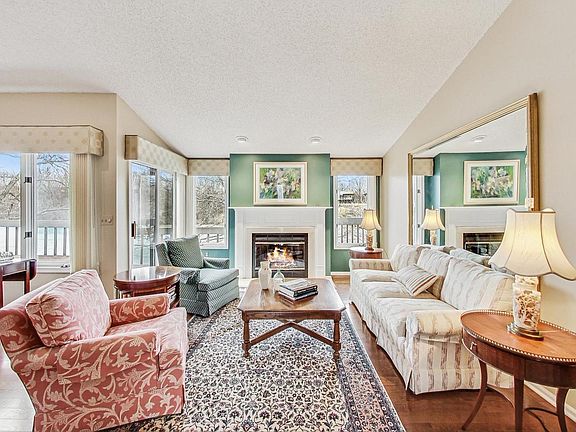 This beautiful updated duplex home offers stunning views of the lake and towering trees in the highly coveted Wildrose Springs subdivision. A retreat that checks off all the boxes, with 4 bedrooms, 3 full baths, den, and a finished walk-out lower level. Kitchen has been totally remodeled from top to bottom with new stainless steel appliances, cabinets, back splash and granite countertops that opens to a private deck. Enjoy cozy nights in front of the gas fireplace in the gracious living room. The private den is a great space to work from home or to just relax. A spacious first floor primary suite with fabulous lake views and access to the outdoor balcony features a vaulted ceiling, walk-in closet and full ensuite bathroom. The walk out lower level has a third and fourth bedroom, full bathroom, wet bar, and recreation room with sliding doors to the waterfront backyard. Well-appointed with hardwood floors, 2 gas fireplaces, vaulted ceilings, and closet organizing systems. The natural beauty of this resort-like setting provides a peaceful Staycation all year! Never lift a finger maintaining your yard or plowing your driveway as the HOA covers that. Close to top rated schools, parks and beautiful downtown St. Charles. Move right in, this home is waiting for you!