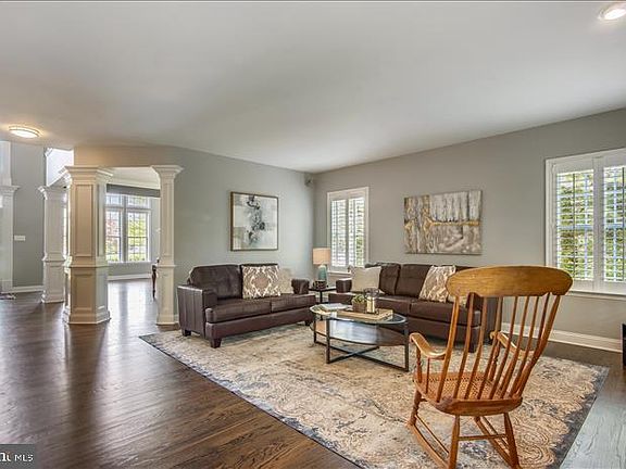Large and beautiful home located on a cul-de-sac at the end of an elegantly landscaped driveway, Enjoy an airy, light-filled open floor plan with gorgeous, refinished hardwood floors in a strikingly handsome dark walnut stain. This home has been recently painted throughout. Plantation shutters, stainless steel appliances, brand new gas range stove and backsplash in entertaining kitchen with center island & fantastic table space for everyday dining and entertaining. (Table can be sold separately if buyers desire.) Formal dining area is located off the family room that features a cozy gas fireplace. Step out onto the stone patio to a wooded, zen-like setting with potted fountain, new plantings and dry riverbed garden. Backing to this peaceful space is a main level bedroom/office with an adjacent full bath. Four more bedrooms upstairs, all with new carpeting, including the large, en-suite primary with walk-in closet. Three additional bedrooms, hall full bath and large loft/office space complete the upstairs. Very ample unfinished lower level with rough-in provides endless possibilities. Roof just recently replaced, new entry door and sidelights were just installed this week. Basketball hoop conveys! Landscaped shrubbery & plantings on the right of the driveway including box garden are part of the property. Community playground is steps away. Don't miss out on this most excellent offering!