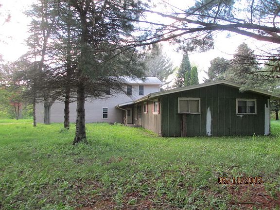Eight plus acres with large home in need of T.L.C. Original ranch style home is 3 bedrooms and 2 bath manufactured home built in 1968. Vaulted ceilings, skylight, laminate and tile flooring, six panel doors. Two story addition adds 2 more bedrooms, family and rec rooms along with separate heating system and attached 2 car garage . Metal pole building and additional sheds also on property. Sold AS-IS, Earnest money in certified funds, additional addendums after initial acceptance.