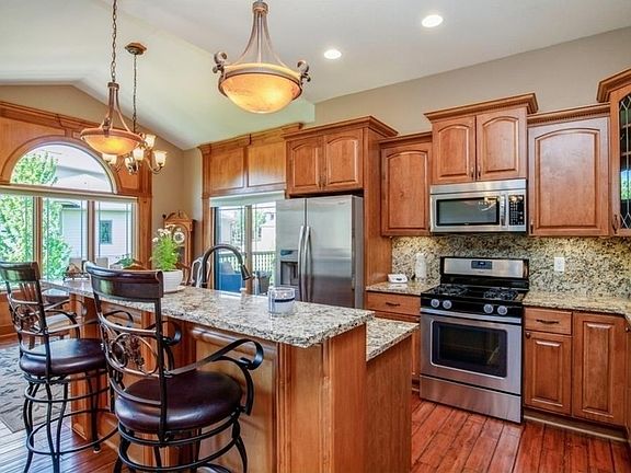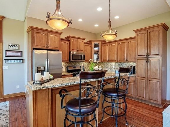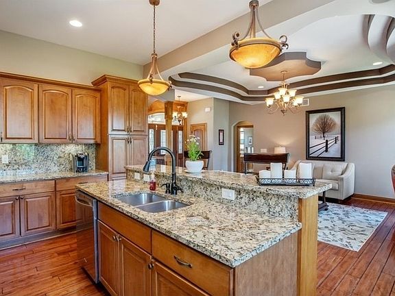 This beautiful Tuscan ranch features over 3200 sf of exceptional features including custom trey ceilings, gorgeous hardwood floors, custom woodwork, loads of granite and custom tile work. The main floor and lower level each have 3 large bedrooms and 2 full baths each for the large family or lots of entertaining. Enjoy warm fires on cold evenings on both levels. This home also features amazing outdoor space. Covered deck on main and nice patio off walkout lower level. You will love the neighborhood parties and enjoy your walks to Kollmorgan park and pond which is a block away. Come take a look and make it your own! BONUS: Security system, central vac, irrigation system and custom window coverings.