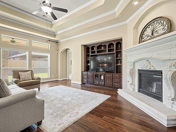 Stunning Village Builders one-story home on a quiet cul-de-sac in sought-after Summerwood! This 4-bedroom, 3-bath home features a private study and a grand rotunda entry that opens to an airy, open-concept layout with high ceilings, crown molding, and abundant natural light. The gourmet kitchen offers granite countertops, stainless steel appliances, and a large island overlooking the spacious family room with a gas fireplace. The elegant primary en-suite includes dual vanities, a soaking tub, separate shower, and walk-in closet. Enjoy outdoor living on the covered patio. Summerwood amenities include pools, parks, fitness centers, and scenic walking trails. Conveniently located near Beltway 8, Generation Park, dining, and shopping. Immaculately maintained and move-in ready with a 3-car split garage — the perfect blend of luxury, comfort, and location!