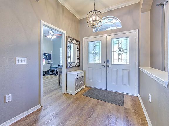 Saltwater poolPond viewReclaimed water sprinkler systemSitting roomRich wood flooringSunny eat-in kitchenFormal dining room