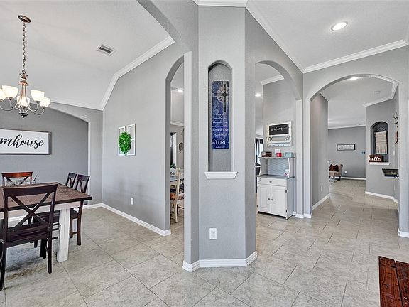 This stunning 3 bed, 2 bath home in the Seven Oaks South section of the Newport subdivision boasts gorgeous curb appeal and a spacious fenced in back yard, with a covered patio. Enjoy stainless steel appliances, granite countertops, and a large island in the kitchen. All tile in the main living areas with carpet only in the bedrooms. The primary bath features a double vanity, soaking tub, and separate shower. Two secondary bedrooms and a second full bathroom. Flex room/office. Formal dining room. Crown molding and energy-efficient windows. Access to amenities like a golf course, community pool, walking trails, tennis court, splash pad, parks, access to Lake Houston and San Jacinto River, and more make this home truly special. Never flooded!