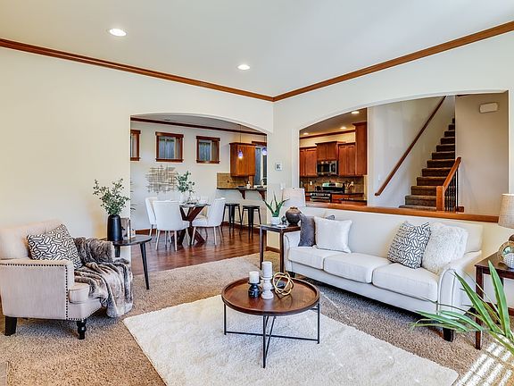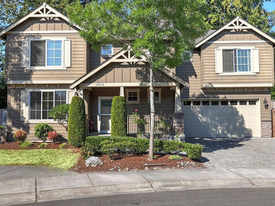 Distinctive detailing and craftsmanship! Nine ft ceilings on main, Hickory hardwoods, crown molding, wood trim, arched wall accents, classy frplc and fashionable finishes complement the open design. Handsome island kitchen features slab granite countertops, SS applcs, walk-in pantry, two turntables. Wrought iron staircase up to king-sized primary suite with corner frplc, tiled dual sink, soaking tub bath; addtl sizable bdrms; stylish main bath; laundry rm w/sink. Central AC! Upgraded patio has stub for gas BBQ; gated concrete side yard. Walking distance to Elem and Jr High schools, just steps to park and playground. Haley's Park enjoys easy access to I-405, Park&Ride, Village at Totem Lake, Woodinville Tourism District, Downtown Bothell.