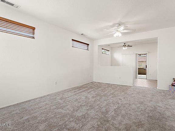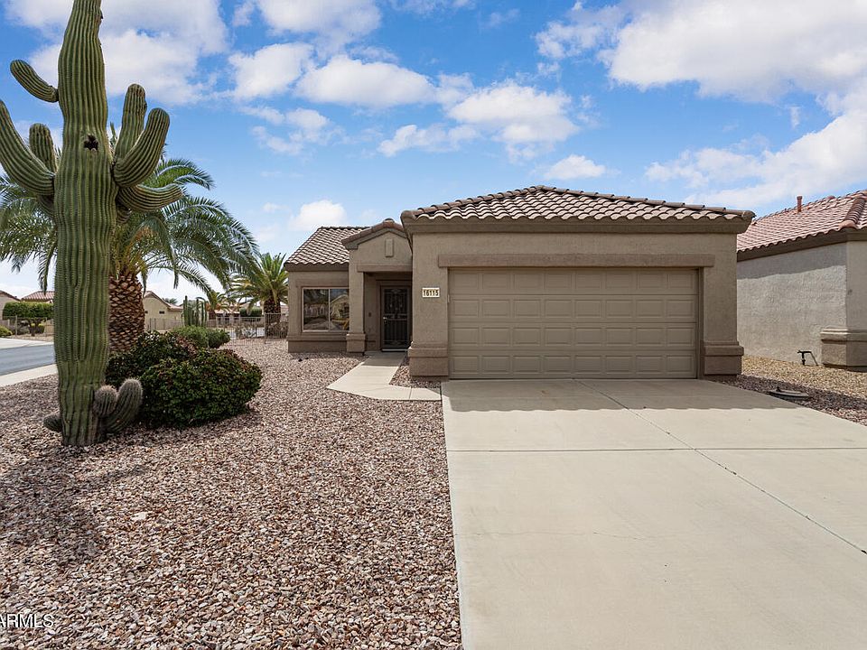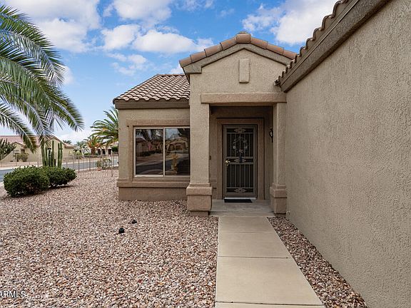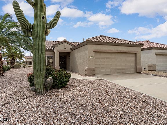 Well-maintained Cedar 1 bedroom plus roomy den/office, 1.5 bath on a desirable corner cul-de-sac lot, offers privacy & curb appeal. Updated with new dual-pane windows, a new roof (2023), new HVAC (2024), plus a 2-year-old water heater. Step inside to find new tile floors, classic oak cabinetry, & an efficient kitchen featuring laminate counters and an electric stove/oven. Other highlights include ceiling fans, a knee wall, extended covered patio, and a fenced yard—perfect for relaxing or entertaining. Outdoors, enjoy PVC irrigation, low-maintenance landscaping, and north/south exposure for optimal Arizona living. The home also includes a solar lease for added energy savings.