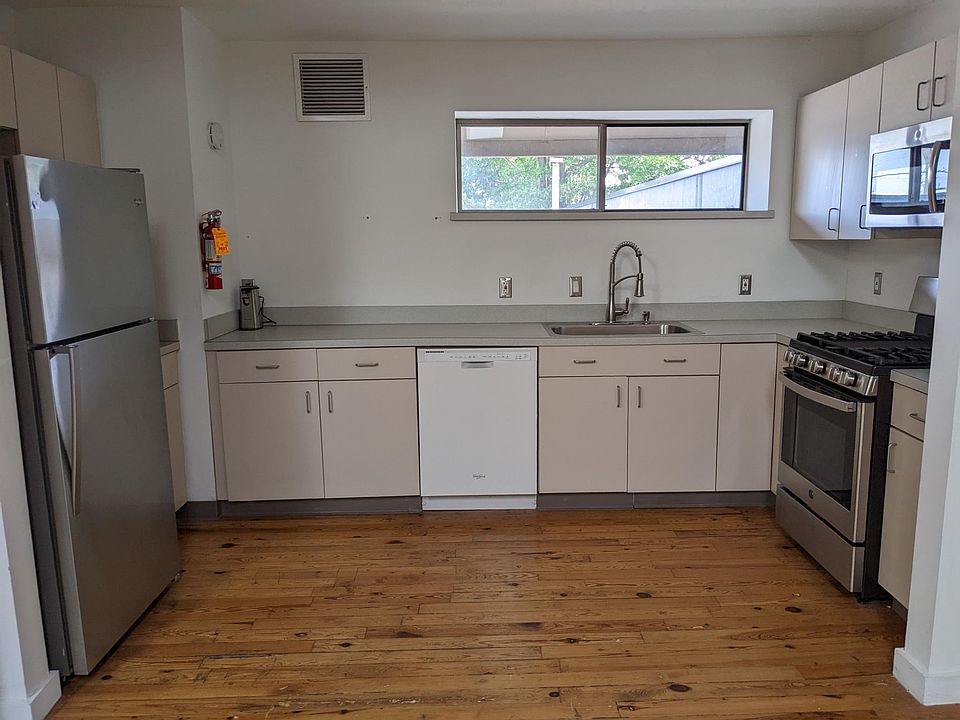 Big studio, full kitchen. Access from Stairs. Parking just outside the suite. Shower, in suite washer and dryer. For extra $150 for all utilities gas, electric, internet, water, heat and A/C. Parking on site. Credit score minimum 600 or higher. Tenant should have x3 rent in income. deposit required. First month rent due upon moving in. Pet deposit required if you want pets and is extra $10 a month for pet. Please text first, I do not answer unknown calls. Apartment up a flight of stairs.