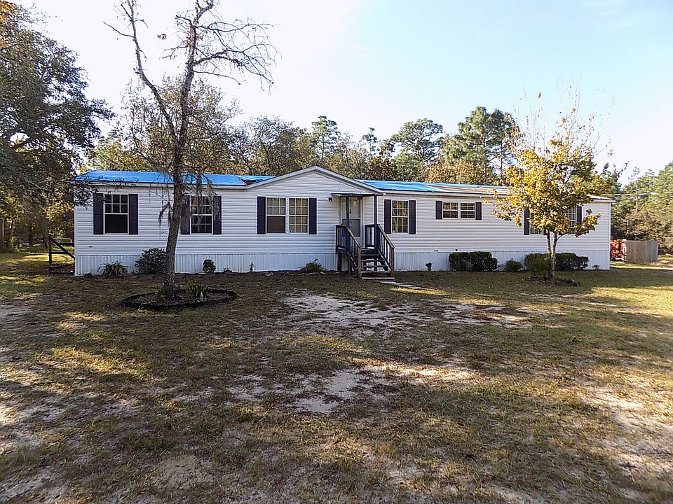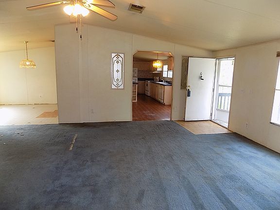Private 1 acre lot with this spacious 3 bedroom, 2 bathroom mobile home! Situated on an over sized, private lot yet still close to most major conveniences including schools and shopping. The interior has a large living room with a fireplace, separate dining room, HUGE kitchen and a split bedroom layout. Master suite has a walk-in closet and an over sized attached bathroom. Lots of potential! Call today before it's too late.