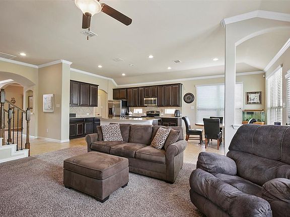 POOL & PATIO on Greenbelt Lot in Prosper ISD! Spacious home features 2 bedrooms & 2 full baths downstairs set in a thoughtful & open floor plan for family living! Family room is light & bright with fireplace opens up nicely to kitchen & 2 dining areas. Kitchen features large island, tons of cabinet & counter space with stainless steel appliances. Upstairs has large game room, powder bath plus 3 bedrooms with jack & jill bath. Peaceful backyard features covered patio & pool on a greenbelt lot with iron fence - feeling like an open & large lot. 3 Car Garage & beautiful curb appeal with mature landscaping. Don't miss this one!