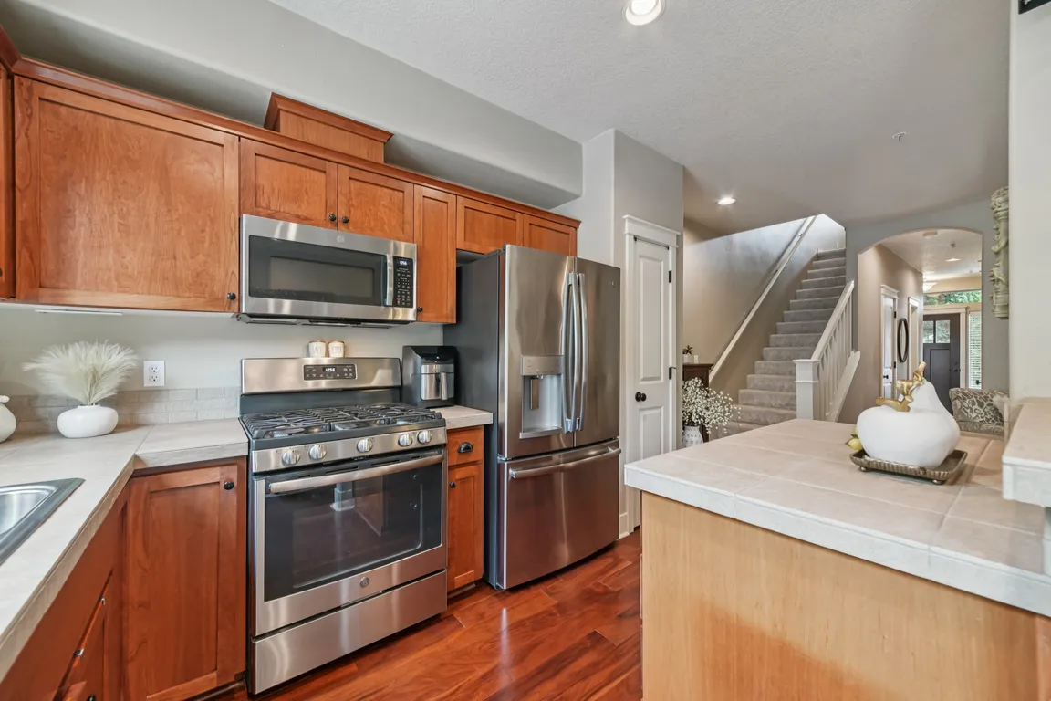 - Features: Dishwasher, Disposal, Gas Appliances, Island, Microwave, Pantry, Free Standing Range, Free Standing Refrigerator, High Ceilings
