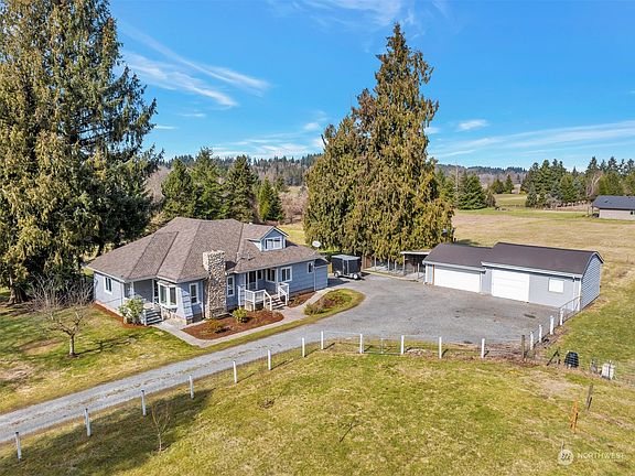 Hobby farmer’s delight w/ the charm of yesteryear. Enjoy the vintage touches, open floor plan & high ceilings at this amazing country style rambler in the heart of Snohomish County. So many updates: 50-year roof, electrical, plumbing, flooring, windows, paint, more/etc. Wonderful kitchen w/ custom maple cabs & a cute breakfast nook. Huge downstairs rec room & more storage. Upstairs has unfinished 450sqft for a new Primary Space (4-bedroom septic design). Lots of room for gardens, animals + all of your homesteading dreams. Detached garage/shop, barn, hen & milk house most w/ power + fruit trees & 4 fenced pastures, all on level acreage. Plenty of privacy living closer to the mountains & open spaces, and far enough out to breathe easy