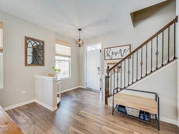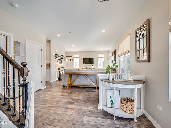 This "Campbell" model features, 9 Ft. Ceilings on Main Level, Luxury laminate wood flooring, a gorgeous kitchen that has tons of cabinets with slow close drawers, quartz countertops, a stone tile backsplash and a stainless appliance package. This is an open floor plan that flows perfectly for entertaining. The kitchen leads to your dining room where you have sliding glass doors that let in natural light as well as views of the backyard. Sellers are leaving the gorgeous Magnolia brand wood dining room table that fits perfectly in this space. On the second floor you have a Primary Bedroom with Private Bath that has a separate soaker tub and shower, vaulted ceilings and a large walk-in closet. There are 2 more generously sized bedrooms as well as having 2nd floor laundry to make chores a breeze. Some other great features to mention are recessed lighting through-out, plush carpet and A RARELY AVAILABLE FULL BASEMENT WITH A BATHROOM ROUGH-IN awaiting your finishing touch. Your basement also has 2 egress windows and is an end unit home. This community is close to downtown Lockport, offers scenic views from the I&M Canal and the Des Plaines River Valley. You are close to a wide array of shopping and dining options. The park is located at the end of the block.