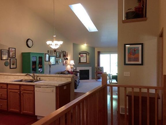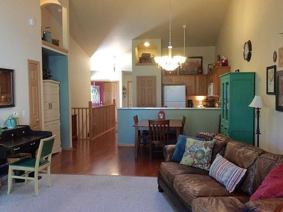 Move right in to this lovely open-concept condo with vaulted ceilings, skylight and a cozy gas fireplace. New hardwood oak flooring and attractive architectural features lend elegance to the gracious living space. Master bedroom suite boasts a large walk-in closet and private bathroom. This 2 bedroom, 2 bath unit has main floor laundry, tons of storage and a very dry basement -- ready to finish and stubbed for another bath. Enjoy a quiet neighborhood and the natural beauty of your landscaped berm from your private patio.