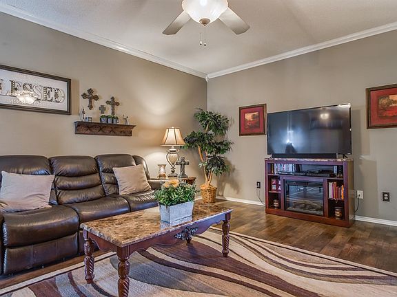 Beautiful move in ready 3 bedroom 2 bath with distressed vinyl plank flooring. Brand new carpeting in the bedrooms & crown molding in the living room. Nice size eat in kitchen with stainless appliances, large utility room & pantry. The master bedroom has attached bath with large soaker tub, double marble vanity & his and her closets. The house is located on a quiet cul-de-sac within walking distance to Roberts Elementary. This is a must see!!