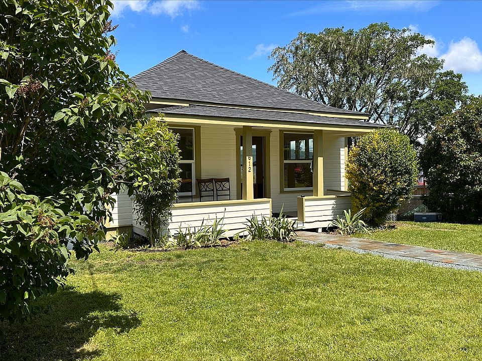 Available on 10/01/2025. Charming house built 1912. Beautifully restored blending vintage charm with modern amenities. Step inside to discover the warmth of original fir floors. The house has been fully brought to 2024 standards all new kitchen with Bosch appliances dual fuel oven.with butlers pantry and cabinetry throughout. New bathroom. Two bedrooms are similar size 10x 10 1/2, one bath plus bonus room near kitchen 12x6 1/2. Huge lot. Pet friendly. Fully fenced side and backyard. None smoking inside. Rocking chair front porch. Walking distance to commercial avenue restaurants and stores. All new windows interior doors. Fully insulated. Vermont Casting free standing gas fireplace. Additional flat panel electric convection panels in bedrooms. 800 square foot basement storage not heated. Single car garage.