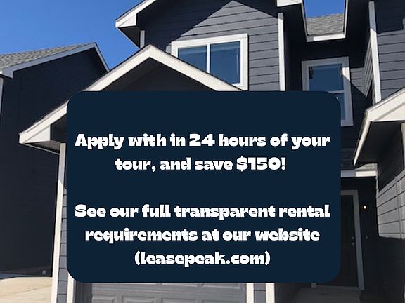 If you apply within 24 hours of your tour, you'll save $150 on your move in costs ADDITIONAL.