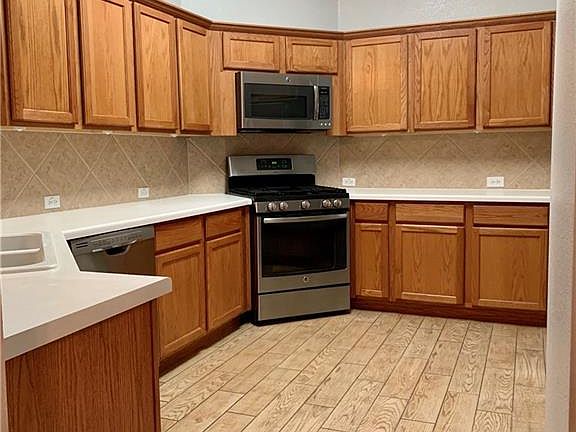 Well maintained 3/2 MiL plan on a greenbelt. Home features an open floor plan with fresh paint, NO CARPET- wood look tile floors in main living areas, and luxury vinyl flooring in bedrooms (6/20/20), ceiling fans in all bedrooms, stainless/black appliances, refrigerator included. Master bathroom features double sink, walk-in shower and separate tub. Covered patio and uncovered patio and fire pit. Some pictures are from previous listing