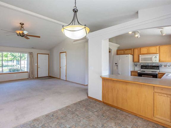 Very clean no-step entry Rancher near community park. Easy single level living with lots of light and all appliances stay including washer/dryer. Enjoy the private, fenced and easy to maintain level backyard. Ceiling fans throughout this one owner home. Association fee covers your water, sewer, garbage, common area snow removal and common area maintenance.
