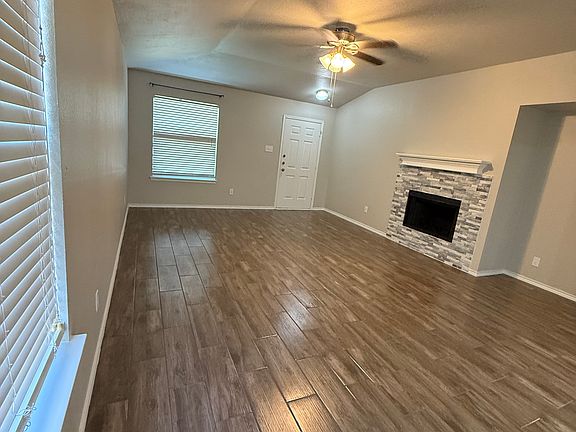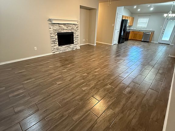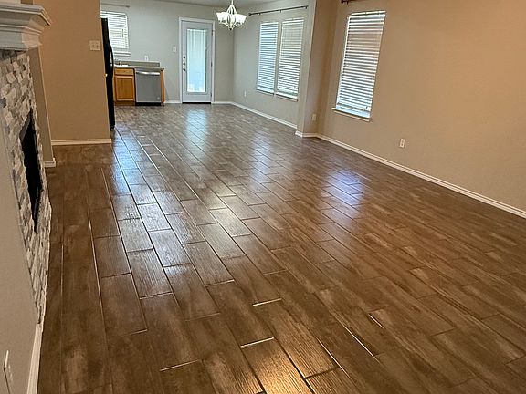 Single-family home with 3 bedrooms, 2 bathrooms, and a large living area open to the dining and kitchen. The large master bedroom has an impressive 10x10 master closet. Freshly painted, new efficient A/C, and wood tile flooring throughout the house. Relax in the privacy of your backyard under a 12 x 20 covered patio--great for those family gatherings and barbeques. Close proximity to major roads, walking distance to multiple parks, a splash pad, and a frisbee golf course.