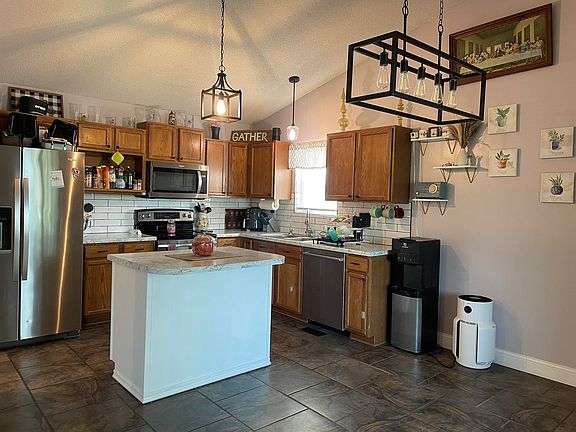 Welcome to this lake lot home in the desirable Seasons Subdivision in Goddard! This 5-bedroom, 3-bath home offers plenty of space for you and your family. All appliances stay in this open kitchen, featuring all stainless steel appliances, an island with an eating bar, and an 8x12 dining space. The bright living room offers tall vaulted ceilings and a beautiful view of the lake. The main floor, walk-in, laundry room features a washer and dryer that also stay with the property. The primary suite boasts a walk-in closet and a private bath, providing a peaceful retreat. Two additional bedrooms and a bath complete the main level. Downstairs, the finished basement features a huge recreation room, perfect for entertaining friends and family. There are also two more bedrooms, a third bathroom, and plenty of storage space. Outside, you'll find a covered deck, perfect for enjoying the outdoors, a wrought iron fence for added privacy, an entertaining area, and a sprinkler system to keep your lawn looking lush and green. No specials and low HOA dues make this home a great find! The neighborhood amenities include the lake and a playground, perfect for outdoor fun. And with the sought-after Goddard School District, you can feel confident in the education your children will receive. Quick access to Kellogg, Tanganyika Wildlife Park, and West Wichita make this location convenient for commuting and enjoying all that the area has to offer. Don't miss your chance to make this beautiful lake lot home your own!