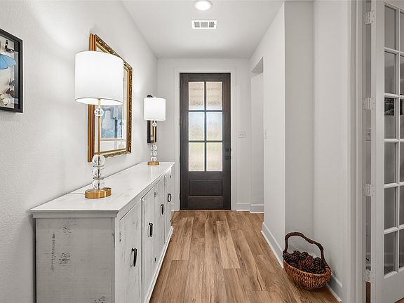 ASSUMABLE 3.49% ARP FHA FINANCING AVAILABLE!!! Elegantly upgraded home in Sandbrock Ranch! Features include: Painted brick exterior, large covered front porch, decorative lighting, plantation shutters, white oak hardwood flooring on the staircase and upstairs hallway, complemented by elegant wainscoting along the stairwell. The primary suite and upstairs closets include custom California Closet systems for organized luxury. The mudroom boasts a shiplap accent wall, while the laundry room includes custom cabinetry for extra storage. The office has been enhanced with built-in shelving and cabinets topped with granite, along with new engineered wood flooring shared by the master bedroom. The garage includes a sleek epoxy floor coating, adding both style and function. Every detail reflects thoughtful craftsmanship and quality upgrades throughout.