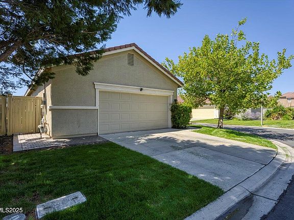 Welcome to 1612 Mountain Lane, a charming single-story home in the heart of South Reno's desirable Double Diamond community. This inviting residence features two bedrooms and two full bathrooms with over 1,200 square feet of thoughtfully designed living space. As you step inside, you're greeted by an open layout that connects the living, dining, and kitchen areas, creating a warm and comfortable flow throughout the home. Large windows fill the rooms with natural light, while a cozy fireplace adds the perfect touch of charm for relaxing evenings. The kitchen is both practical and welcoming, with plenty of storage, tile flooring, and a gas range for easy cooking. The primary suite offers a private retreat with its own full bath, while the second bedroom provides flexible space for guests or a home office. Central heating and air conditioning keep the home comfortable year round, and a separate laundry area adds convenience. Outside, you'll love the low-maintenance yard. The fenced corer lot provides a sense of space and privacy, and the attached two-car garage makes coming and going a breeze. Built in 2001, the home has been well cared for and is move-in ready. Located near schools, parks, and all the conveniences of South Reno, this property is perfect for anyone looking for a balance of comfort and easy living in a great neighborhood.