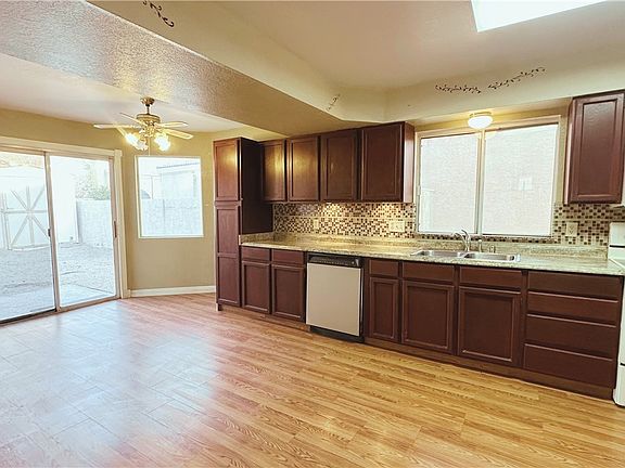 Charming 2-story, 1858 sq ft home with 4 bedrooms, 3 bathrooms, and a 2-car garage. The living room features vaulted ceilings and a gas fireplace. A bedroom and half bath are conveniently located downstairs. With easy access to 95 N Hwy and Summerlin Parkway, it's in a prime location. No association fees! Just needs a little TLC to make it your own.