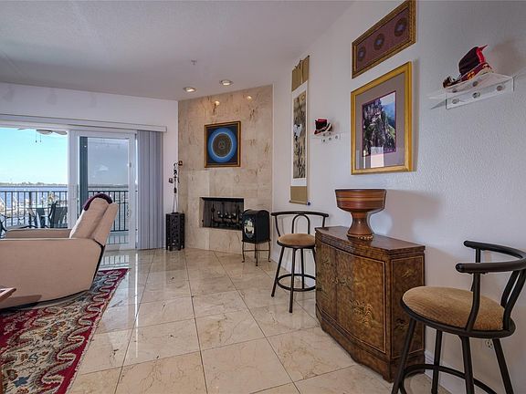 Upscale townhome state-of-the-art, promises gracious entertaining and fun-filled water options including instant boating, fishing, and swimming access. Sunrises and sunsets warming the soul are backdrop to sea birds, dolphins, manatees, and mullets at play. Historic Point Pleasant neighborhood beckons you to stroll or bike as you are merely footsteps away from downtown Bradenton brimming with restaurants, theatre, art galleries, museums, and farmer's market. Inside, riches galore: European cabinetry, travertine marble flooring, third floor oak hallway, new master bedroom carpeting and bountiful storage. Rise as you choose the private elevator or marble-clad staircase, to second and third floors. Eight-foot French doors with frosted glass in each bedroom assure light and privacy. High ceilings and vast walls boast bright, fresh paint in every room, ideal blank canvases to showcase a prized art collection, photography, or family art projects. "WOW" open concept on the second floor provides stunning kitchen, wood-burning fireplace, and wall of glass to delight the eye with captivating views year-round, and maybe, even a peak at your boat. Sleek and stylish, the contemporary kitchen is equipped with stainless steel countertops, tile backsplash, upgraded appliances including Sub-Zero refrigerator, Bosch dishwasher and island with KitchenAid electric vent hood and glass cooktop. Note the plethora of storage, A versatile space, kitchen-adjacent might become guest quarters or home office with walk-in closet and en-suite bath featuring walk-in shower and sliders to invite the breeze. A private elevator carries you to the spacious owner's retreat with balcony and sitting area, his and her closets and luxurious en-suite bath with European cabinetry, large open shower with dual showerheads and jetted jacuzzi tub. Steps away, the third guest suite with en-suite bath and sliders offers a view of Point Pleasant. Conveniently, on this level, an accommodating laundry room with cabinetry and new Maytag washer and dryer. Additional surprises: bonus room for workouts, artistry, or game night; an updated Lenox AC unit, hurricane-rated windows and sliders, intercom, sound system throughout and workbench area. Two fun facts? The boat slip is on a dock which is currently being constructed AND this well-maintained building has a 2021 seawall. Updates include roof and smashing new awnings. Two-car tandem garage has always-needed storage space which is accessible and practical. A wise listener will hear opportunity knocking. In all, a rare Florida lifestyle!