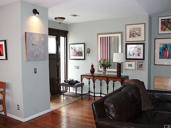 This Charming 2 bedroom, 2 bathroom home offers a Cozy Fireplace in the Living Room and is open to the Dining Room making a nice open floor plan feel. The Galley Style Kitchen has Stainless Steel Appliances, Tile Countertops and Washer and Dryer. The Den has Beamed Ceilings, can be used as a 3rd Bedroom and has a sliding glass door that opens to the backyard perfect for Entertaining. The home also has Hardwood Floors and a 2-Car Garage. The house is nestled adjacent to the Glendale Rancho and is in walking distance to Shops and Restaurants.
