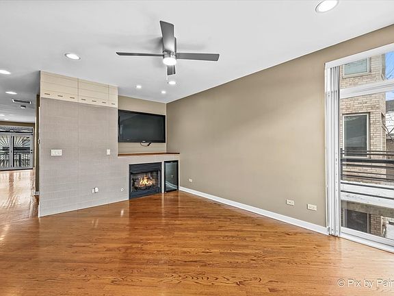 Experience the best of East Pilsen living in this meticulously maintained duplex down located conveniently to public transportation and vibrant 18th street! Expect to be impressed with its modern style, Brazilian 3/4 inch solid cherry floors, and bright, abundant windows that fill the space with natural light. The thoughtfully designed, open floorplan features a spacious living room that boasts imported Italian tile, a luxurious fireplace, a beverage cooler perfect for entertaining, and sliding glass doors that bring the outdoors in. The beautiful kitchen is equipped with tasteful granite countertops and stainless-steel appliances. The luxurious primary suite is a private retreat with French doors, a spacious walk-in closet, and a spa-inspired bath, including a double vanity. Recent updates include a brand-new refrigerator and a newer roof. This home is complete with a well-run association, a deck off of the back of the home, and a secure, gated parking spot. Enjoy an unbeatable Pilsen location just steps away from transit options (Orange/Red Line, Metra, buses, and highway), and all that Pilsen has to offer- shops, parks, nightlife, restaurants, and more!